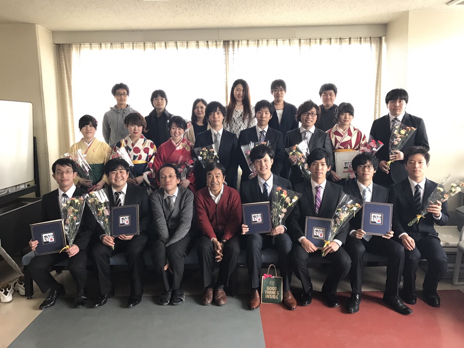 2023年 卒業式 修士課程7名、学部生9名が卒業しました。学部生のうち7名は修士課程に進学します。 2023年 サッカー大会 2022年 歓迎会 2021年 卒業式 2021年 集合写真 2020年 卒業式 2020年 集合写真 2019年 講座旅行 2019年 ソフトボール 2018講座旅行 2018ソフトボール 2018年度以前